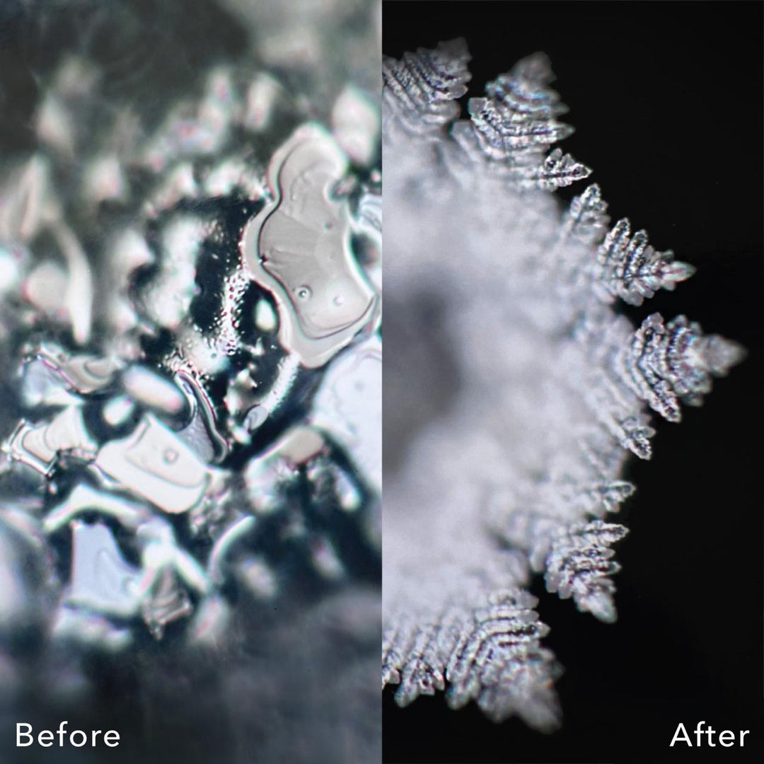 Studies have shown that just 7 minutes of swirling can prompt water molecules to return to their natural synchronized shape, AKA Structured Water. This shape is recognized by the cells in our body, making it easier for water to penetrate and effectively hydrate the cells.